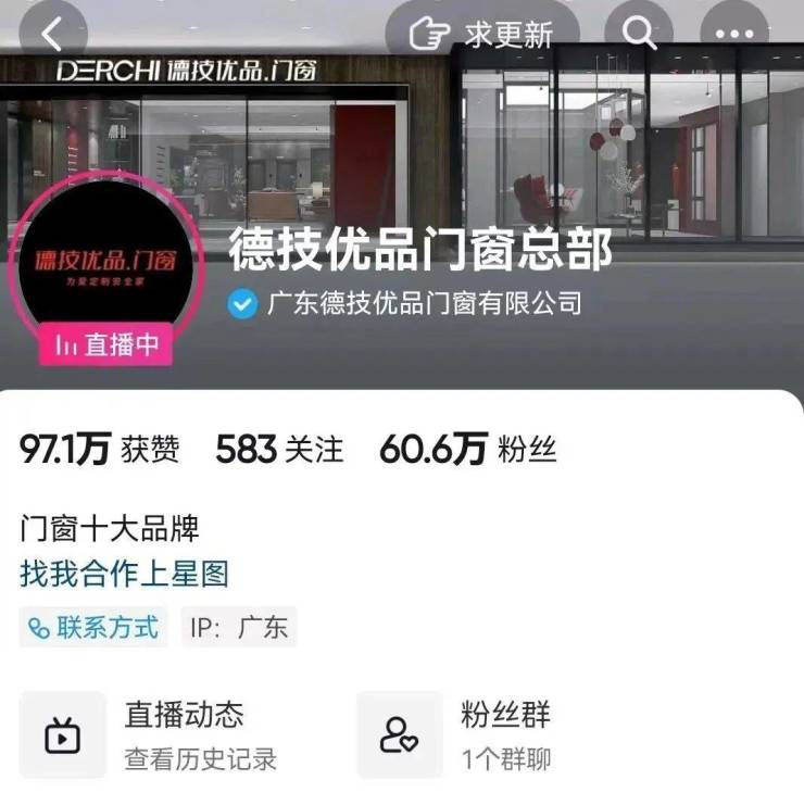 线上线下多渠道布局,是终端流量稳步增长的关键。德技优品门窗线上布局各大新媒体平台营销,抖音平台粉丝数现已突破60万,精准引流拓客,助力终端业绩不断。
