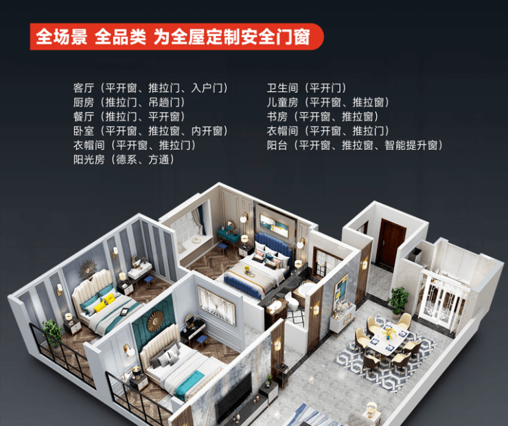 此外,德技优品门窗秉持匠人精神,每个产品从原材料投入到成品产出,都要经过168道生产工序,38道严苛检测,将安心、放心注入到千万家庭使用体验中。德技优品门窗产品品类覆盖全面,适用于多场景,无论是客厅、卧室、厨房、卫生间,还是儿童房、书房、阳台、阳光房等,一站均可定制,为终端门店提供多项成单机遇。