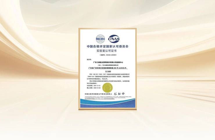 近日,三雄极光通过中国合格评定国家认可委员会评定,授予CNAS认可资质,标志着三雄极光检测中心的产品质量检测能力和监督把控、检测规程体系获得国家权威认可!