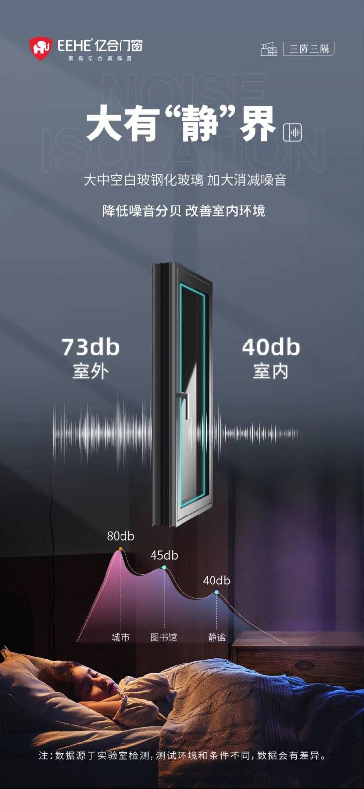 为了打造静谧适的居家环境,助力优质的生活与睡眠质量,亿合高端全防护门窗采用双层中空钢化玻璃,全密封中空层,并通过多道密封防护设计保证严丝合缝,有效降低声波共振效应;配合中空铝条一体折弯技术为整体门窗的隔音性能加持,实现高效降噪,让喧嚣与宁静仅一窗之隔,构建繁华都市中的理想栖息地。