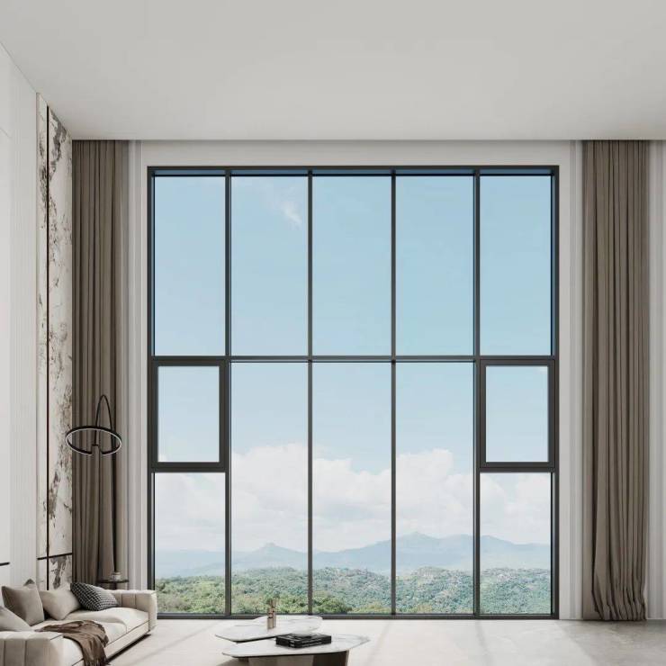 极窄边框的门窗,从外观上往往予人一见倾心的精致感,新标第4代全景幕墙窗立柱可视面实现50MM极致跃级,尽显窄中见广之设计精髓,形态雅致灵巧,视野开阔无界,于方寸尺度和细腻质感之间,探寻无垠自由,重塑空间新境。