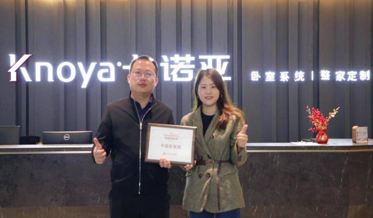 2025年2月12日,卡诺亚家居被授予“2024定制家居行业影响力品牌”荣誉奖牌。搜狐焦点家居华南总经理胡彩贞与卡诺亚营销中心副总经理曹崇慧亲切合影,共同记录下这一荣耀时刻。这一殊荣,不仅是对卡诺亚多年来深耕细作的肯定,更是对其品牌实力与创新能力的充分认可。
